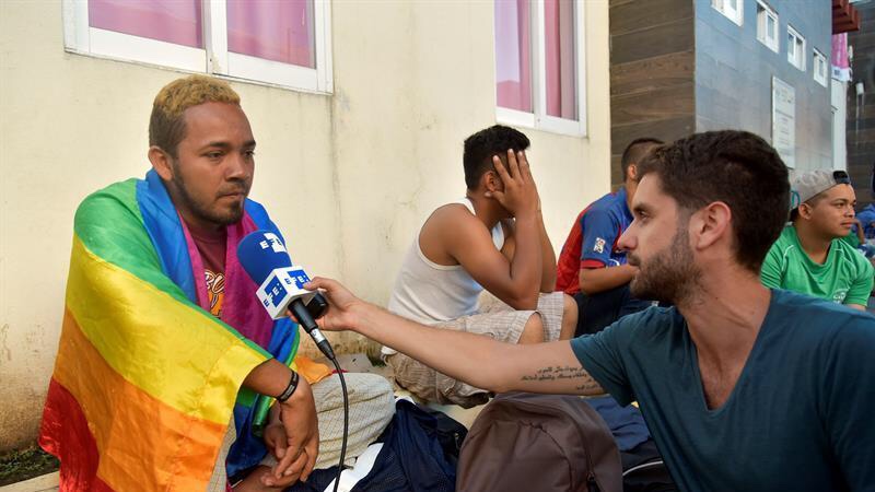 Traen también una pequeña bandera del arcoíris, icono para el colectivo, y decidieron huir del país por la gran discriminación que sufren, que a menudo les empuja a trabajos marginales como la prostitución.