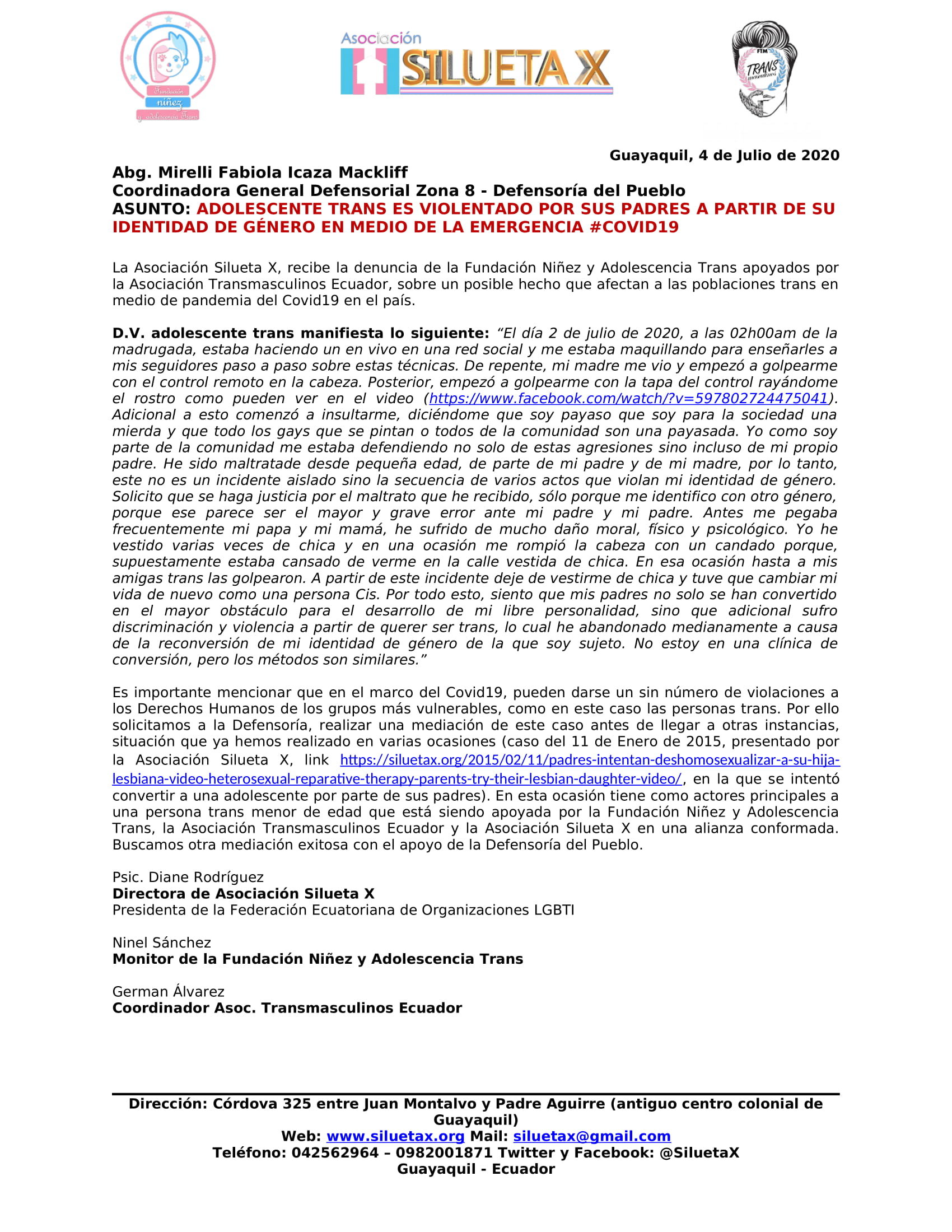 Boletín, ADOLESCENTE TRANS ES VIOLENTADO POR SUS PADRES A PARTIR DE SU IDENTIDAD DE GÉNERO EN MEDIO DE LA EMERGENCIA #COVID19-1