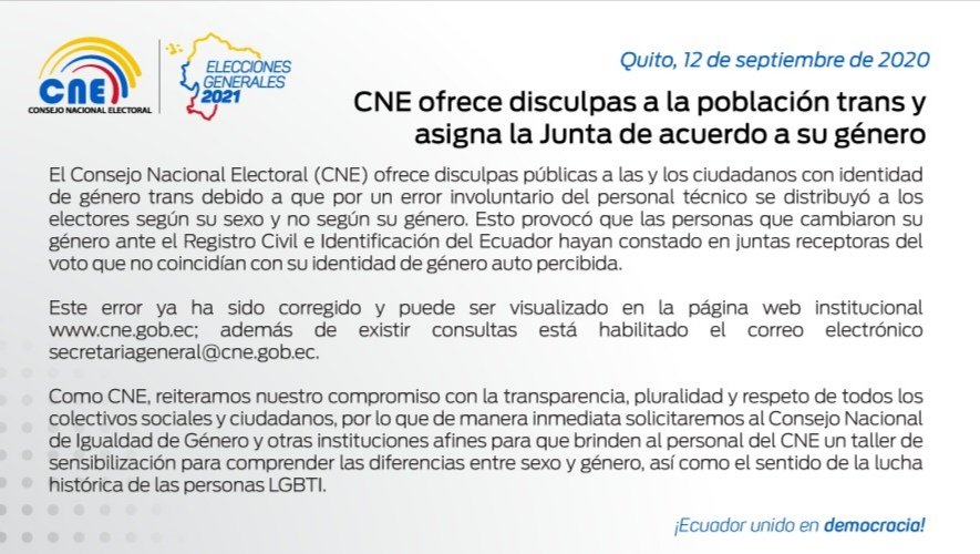 CNE se disculpa con la población trans y asigna junta de acuerdo a su género.