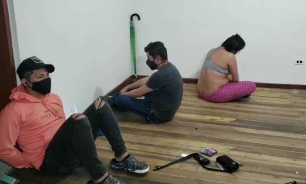 Los integrantes de la PJ ingresaron al inmueble y hallaron a Bryan Cárdenas, José Álvarez, Catalina Barzola y David Ilaquize, detenidos para investigaciones.