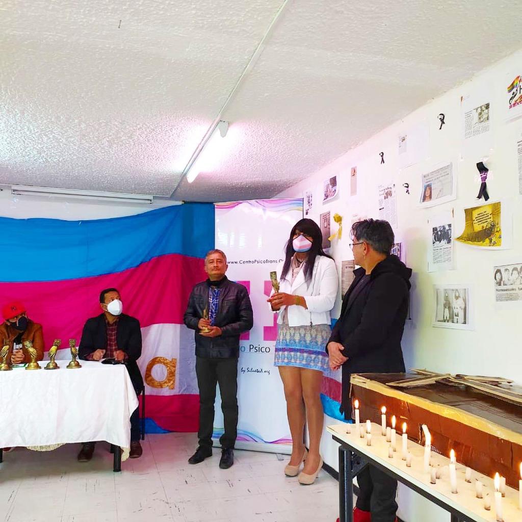 El pasado viernes 27 de Noviembre la Mesa LGBTIQ+ de Quito entregó un reconocimiento a Diane Rodríguez y Emilio Cruz, ambos del Centro Psico Trans y la Camara LGBT.