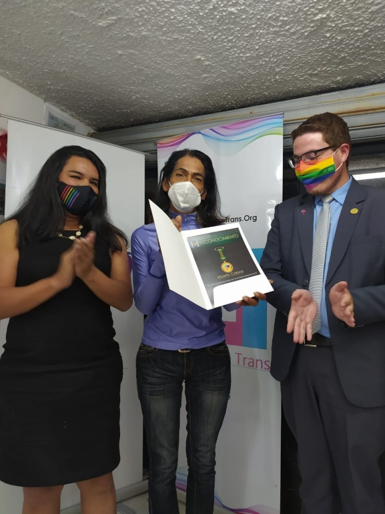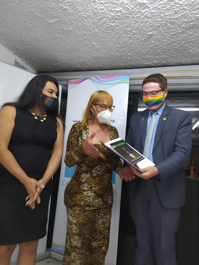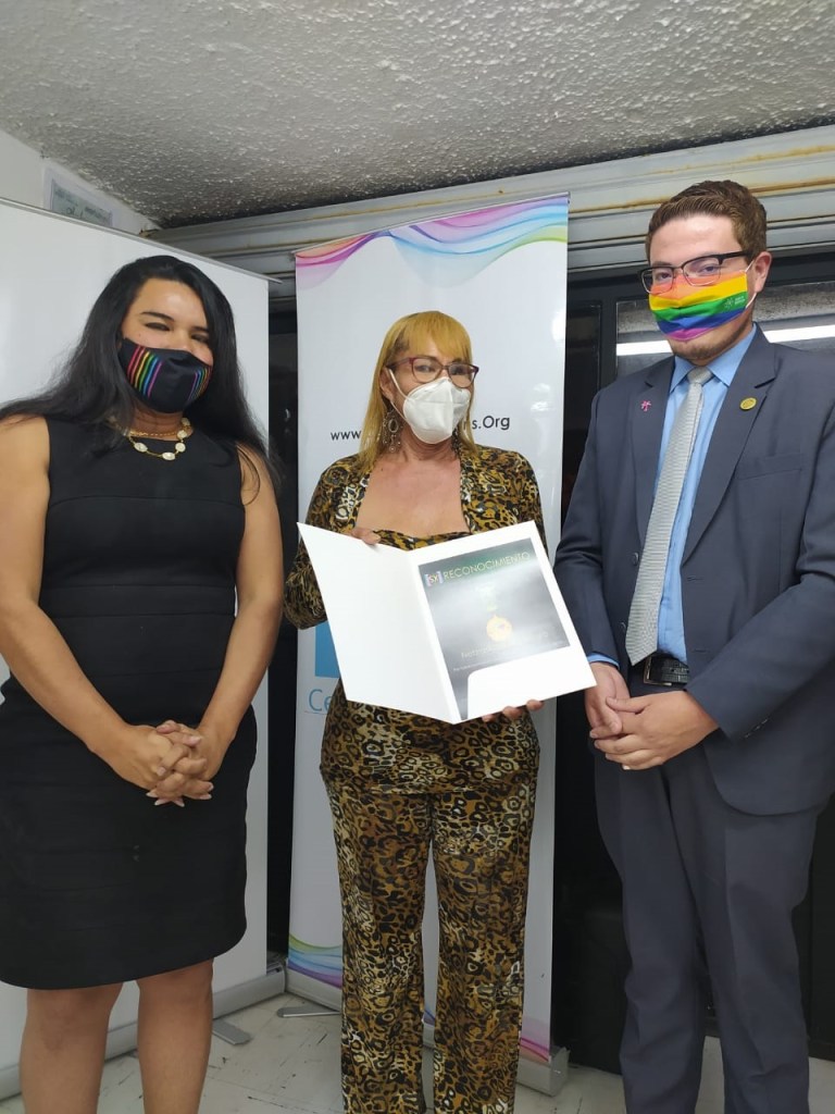En ese sentido la CCLGBTEC, a través de Emilio Cruz, coordinador corporativo nacional, entregó un reconocimiento a Purita y Nebraska, por su contribución a la Despenalización de la Homosexualidad en Ecuador.