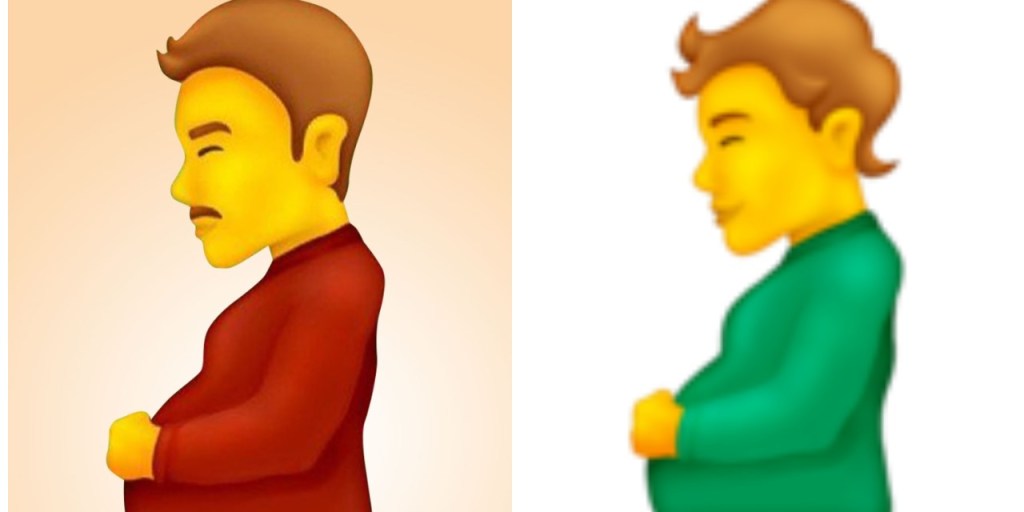 El emoji del hombre trans embarazado aparece con un suéter vino, mientras que la persona no binaria embarazadx tiene un suéter verde y aunque todavía no está confirmado del todo que los emojis formen parte de la nueva presentación de Unicode 14.0, las reacciones positivas en redes sociales generan esperanza de su aprobación.