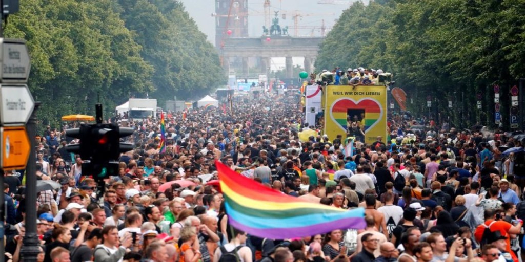 Unas 20.000 personas participaron hoy en Berlín en la tradicional celebración del Christopher Street Day, también conocido como «Día del Orgullo Gay», evento de tono festivo que sirve para reivindicar los derechos de la comunidad homosexual.