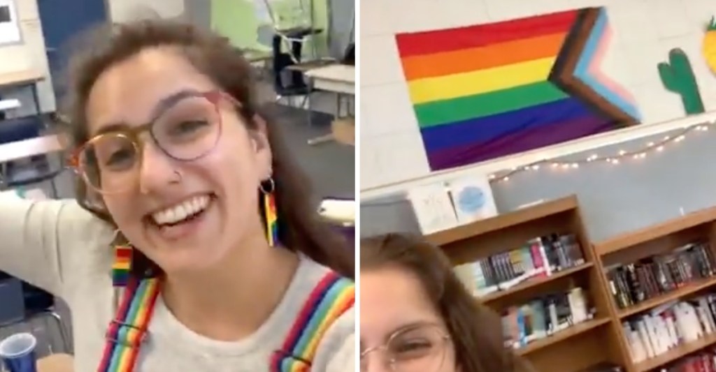 El caso de Kristin Pitzen se hizo masivamente conocido en redes sociales luego de que publicara un video en su cuenta en TikTok, donde bromeaba sobre el hecho de que había retirado la bandera estadounidense de su aula de clases y en vez tenía puesta una que defiende los colores del orgullo gay.