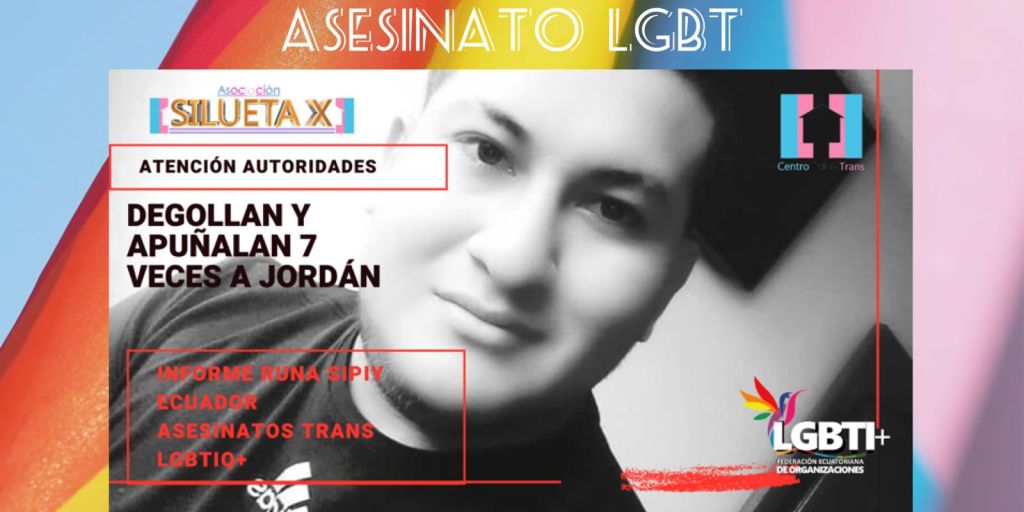 La madrugada del domingo 13 de marzo de 2022, El Centro Psico Trans de Quito de la Asociación Silueta X, fue informado a través de sus redes comunitarias, rurales, periféricas, sub urbanas y urbanas sobre el delito de odio en contra de nuestro compañero abiertamente gay (expresión de género femenina), Jordán Rizo.
