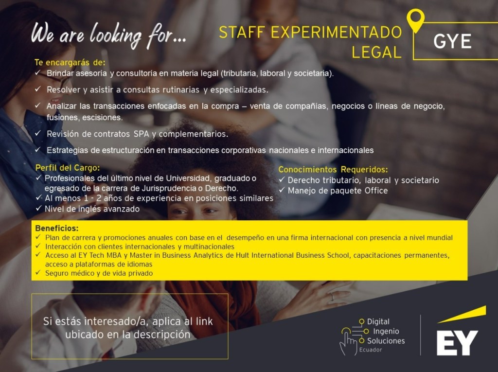 Nombre de la vacante: Staff Experimentado Legal