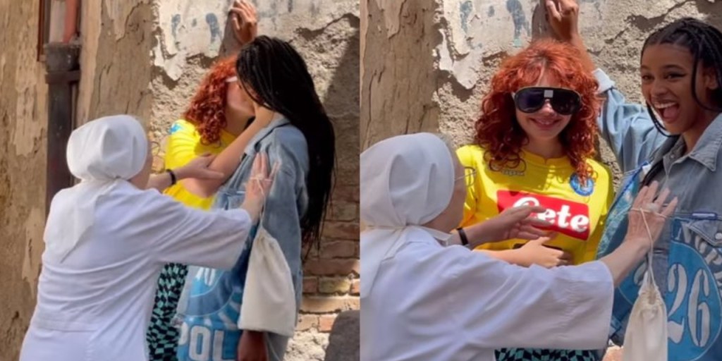 Una monja que pasaba por ahí se lanzó sobre ellas para separarlas y gritar cosas como «¡es el diablo!»